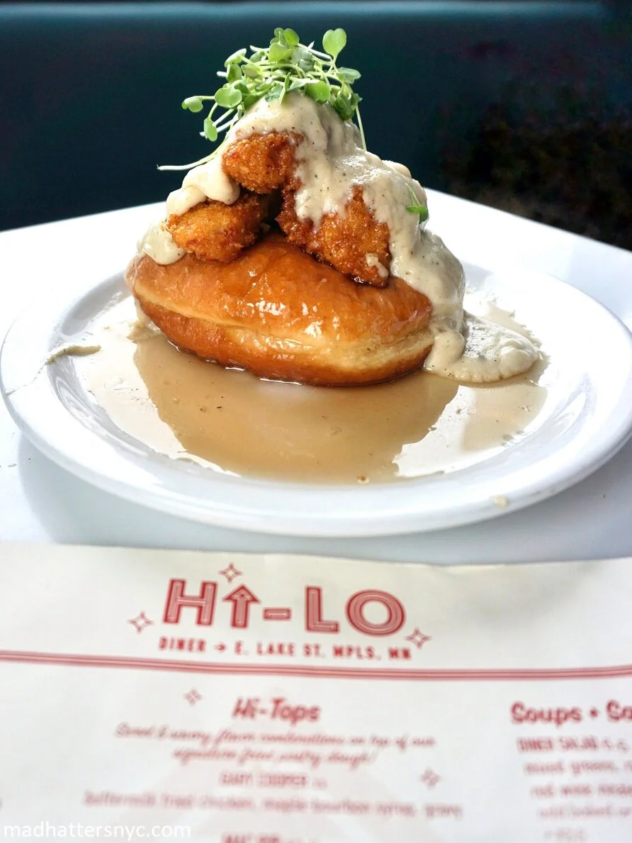 Hi-Lo Diner opened in 2016, but its bones date back to 1957. The original diner was manufactured in New Jersey by the Fodero Dining Car Company and lived a full life as Venus Diner just outside of Pittsburgh for almost 60 years. It received a full facelift and is just starting its second act as the Hi-Lo Diner in Minneapolis. Very few original diners remain, and stepping into Hi-Lo Diner is like stepping into a piece of American history. It’s breakfast all day here, and you can find your diner staples like omelets and pancakes. But Hi-Tops are what they’re famous for, which are essentially donuts on steroids. The Gary Cooper features fried pastry dough topped with buttermilk fried chicken doused in gravy and maple-bourbon syrup. We were skeptical, but the server said, “It somehow all works together.” She was right.