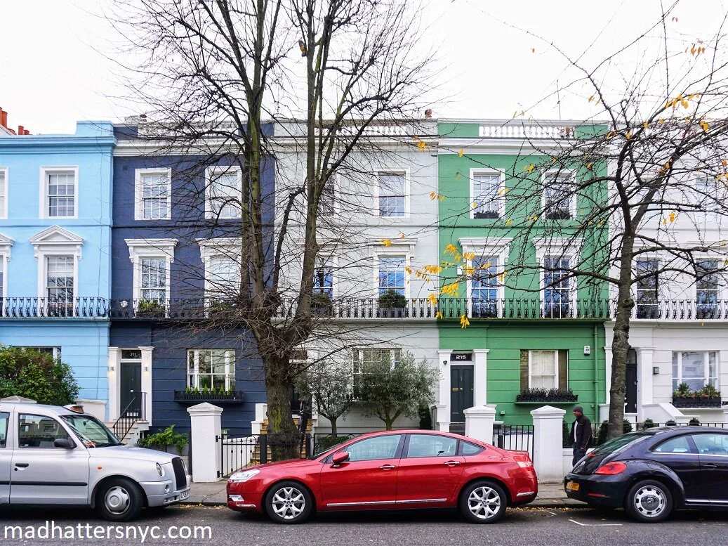 I realize I might have to go it alone on this, but I wasn’t a fan of the movie Notting Hill. While I have a fondness for romantic comedies, this one never got me weak in the knees. So I’m not one of the many girls who flock to London’s Notting Hill neighborhood in search of The Travel Book Co. or the house with the blue door. But that doesn’t mean I don’t find reasons to make my way to this picturesque neighborhood. Notting Hill is infinitely charming not due to, but in spite of, the 1999 film. Here’s a walking tour to help you while away the day in one of London’s quaintest locales.